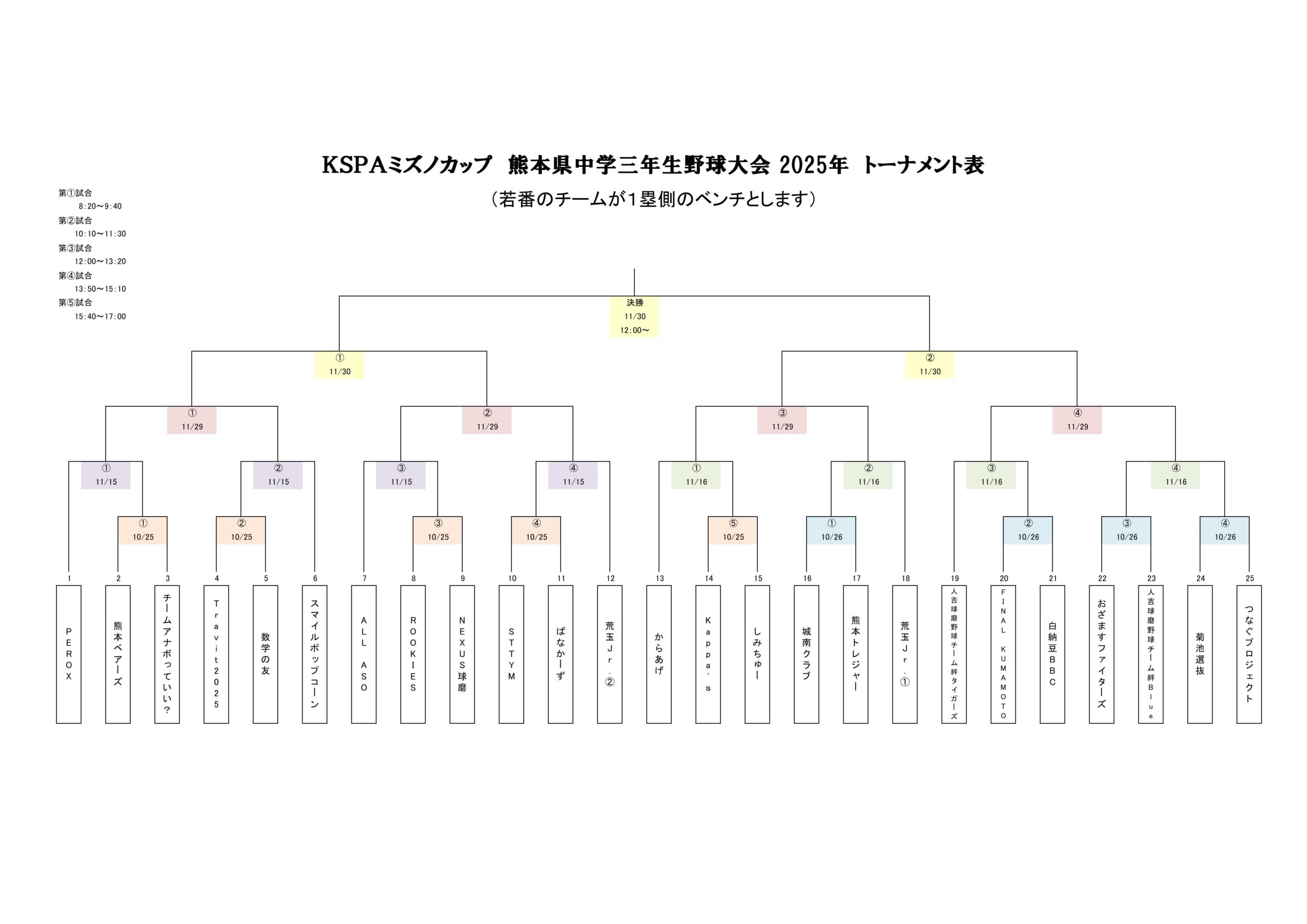 2025年KSPA・ミズノ熊本県中学三年生野球大会トーナメント表