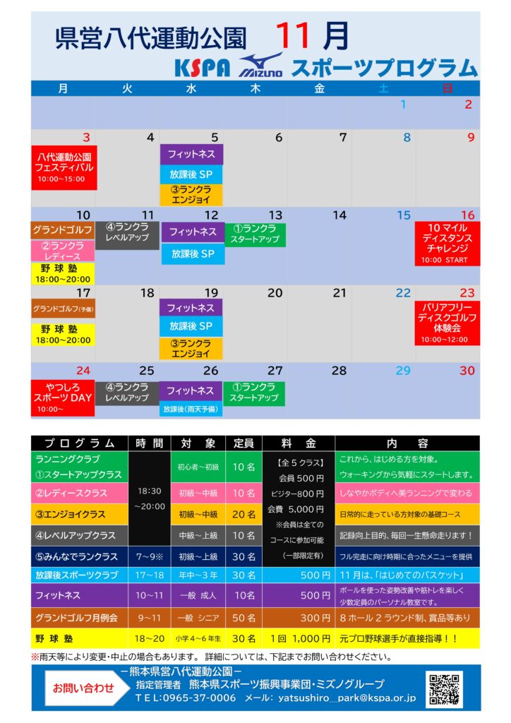 KSPA・MIZUNOスポーツプログラム11月日程表
