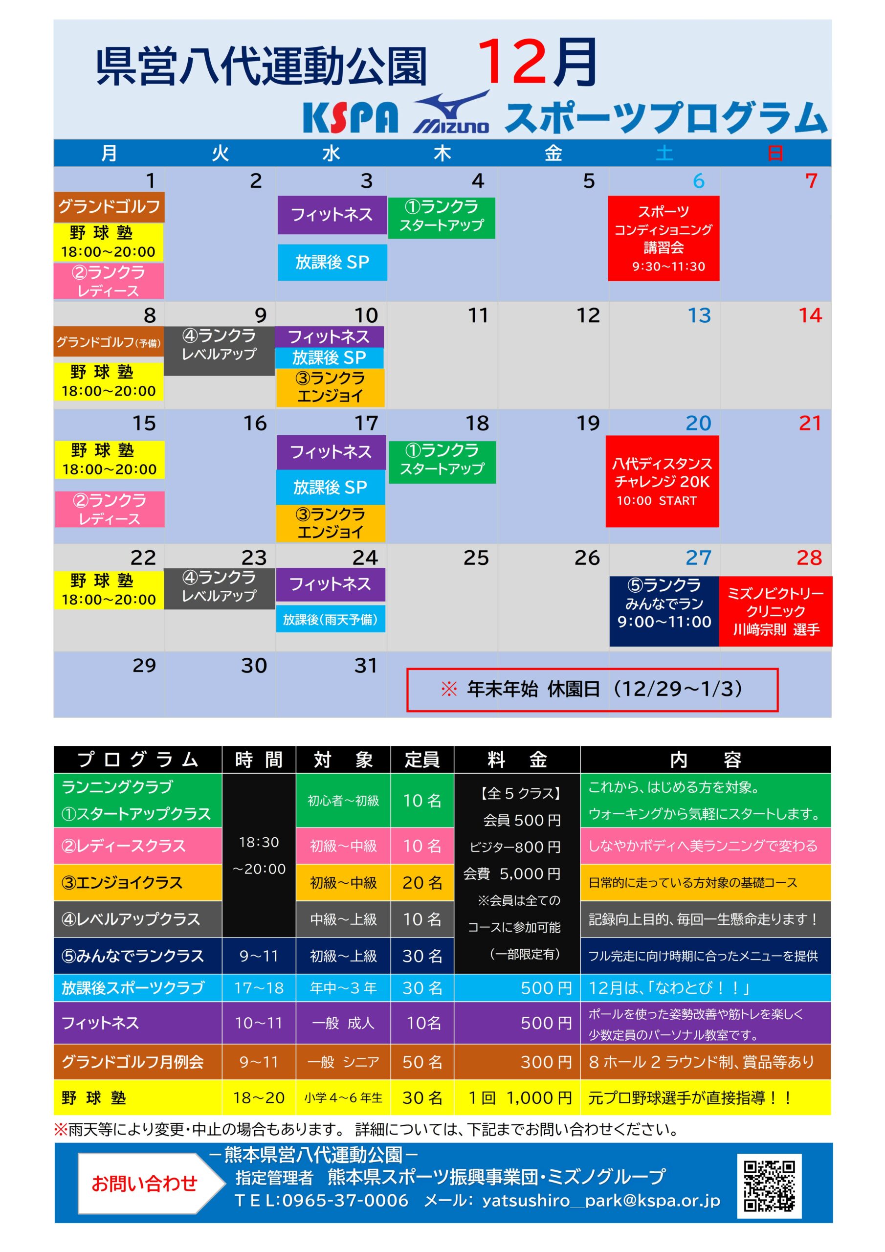 KSPA・MIZUNOスポーツプログラム12月日程表