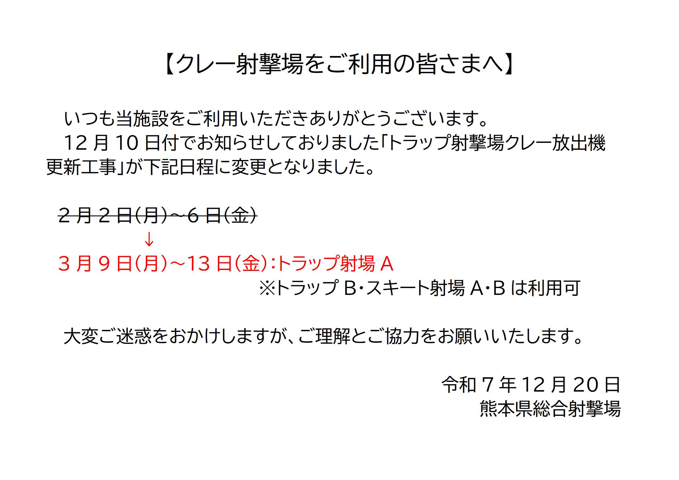 【射撃場】クレー射撃場をご利用の皆さまへ