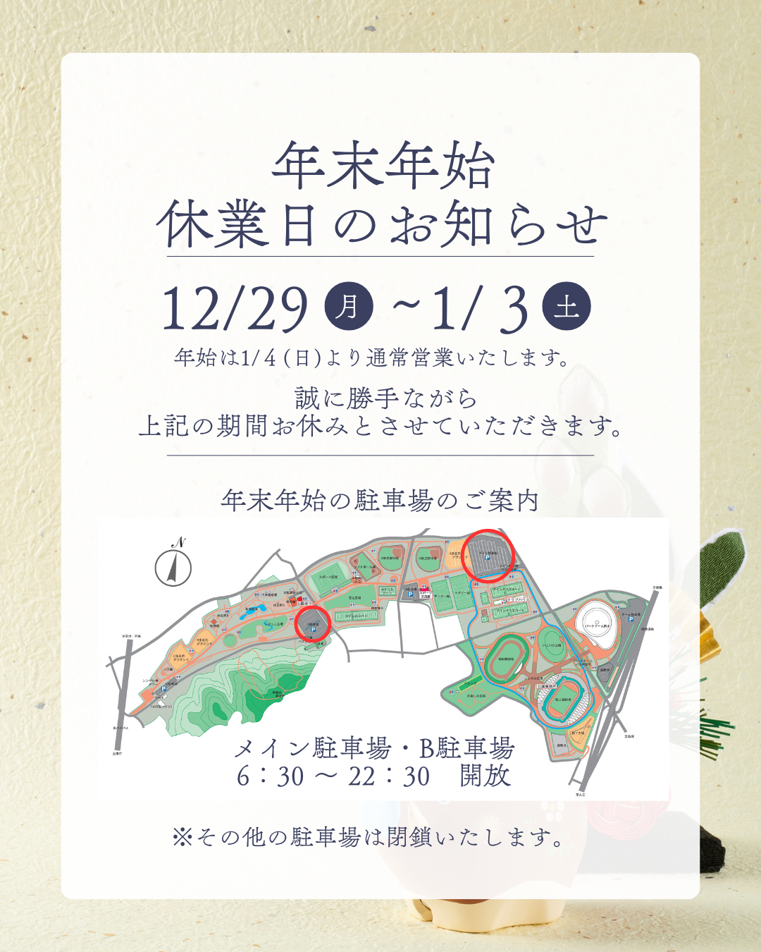 【熊本県民総合運動公園】年末年始休業日のお知らせ