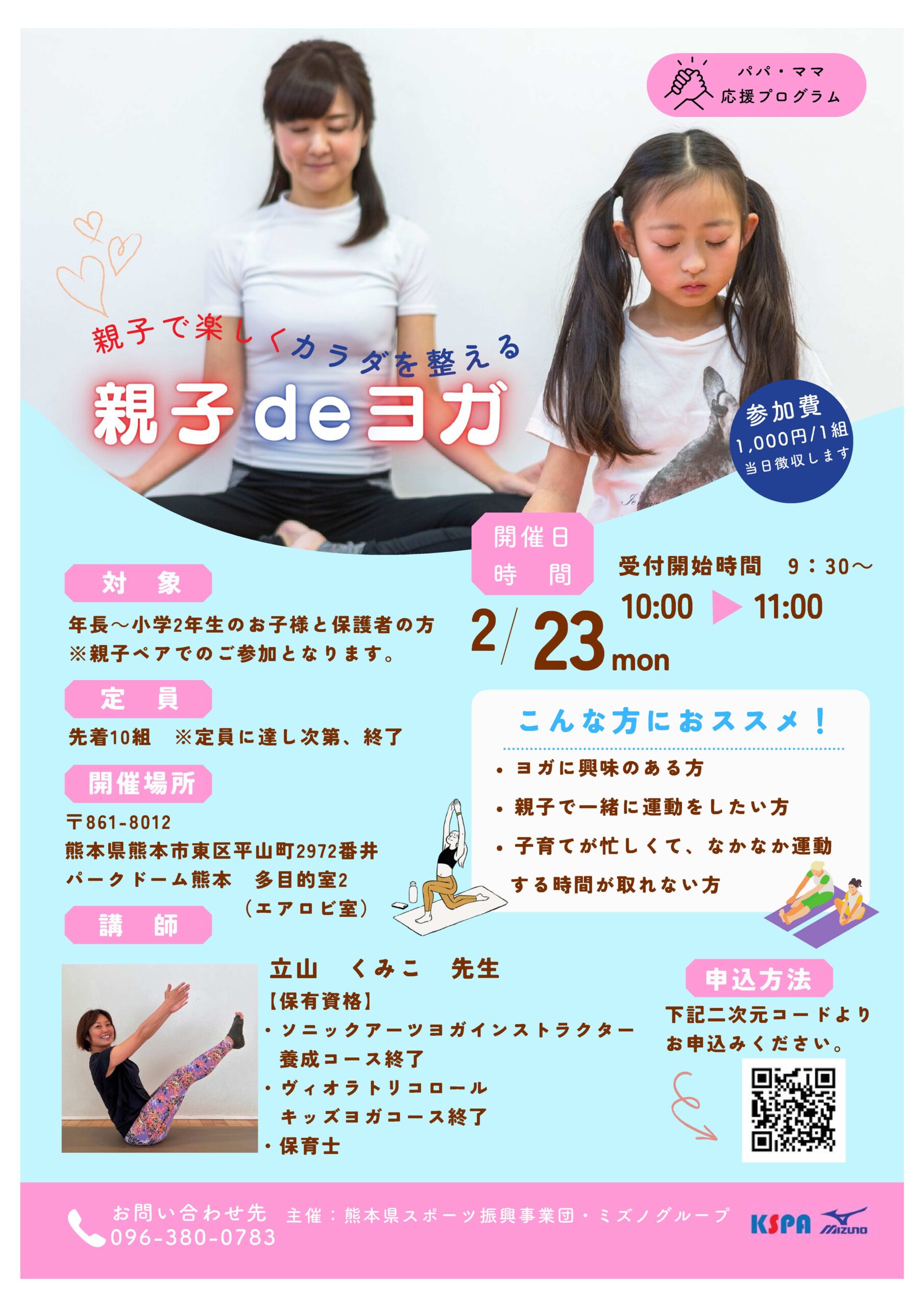 パークドーム熊本にて、親子で楽しめるヨガ教室「親子deヨガ」を開催します。