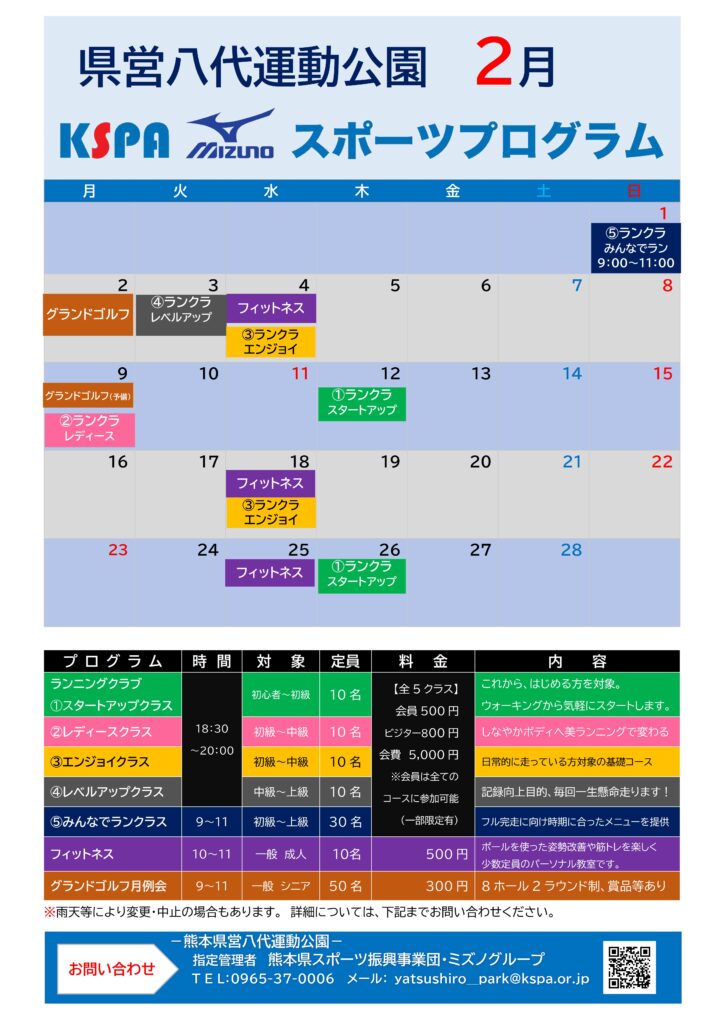 KSPA・MIZUNOスポーツプログラム2月日程表