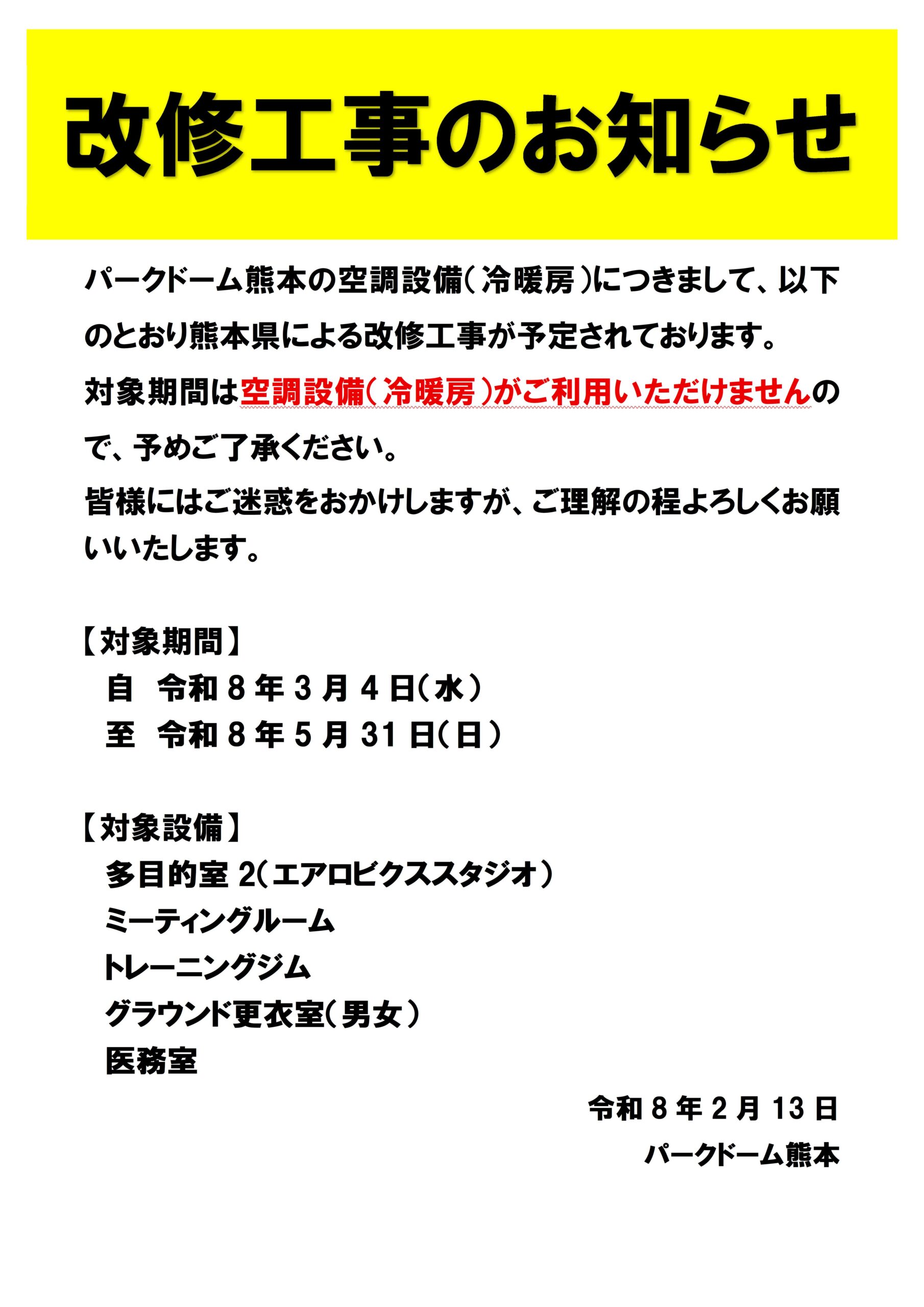 空調設備改修工事(県工事)のお知らせ