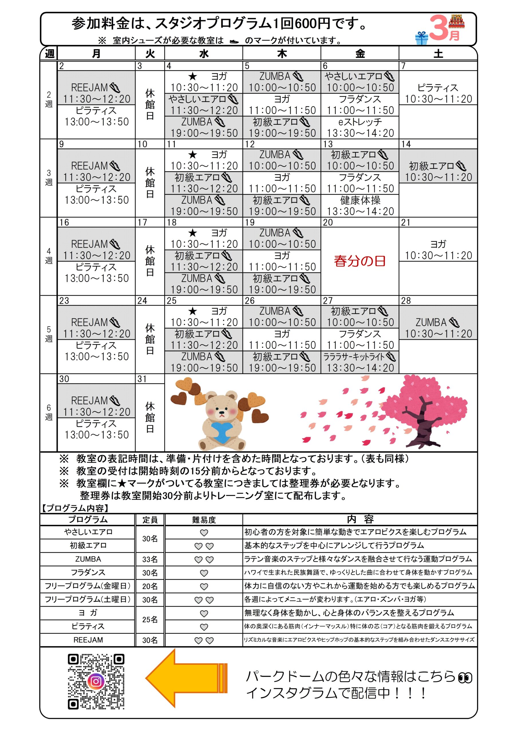 令和07年度3月スポーツプログラム予定表