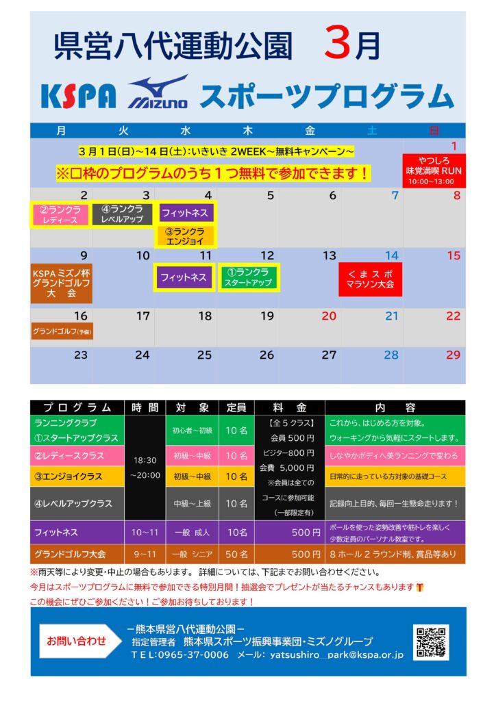 八代運動公園では、『スポーツ』や『カラダを動かすこと』をもっと身近に楽しんでいただくため、 「いきいき2WEEK ~スタートアップ無料キャンペーン~」を開催します! 期間中は、対象のスポーツプログラムが無料で参加可能!スポーツ用具も無料でレンタルできます!