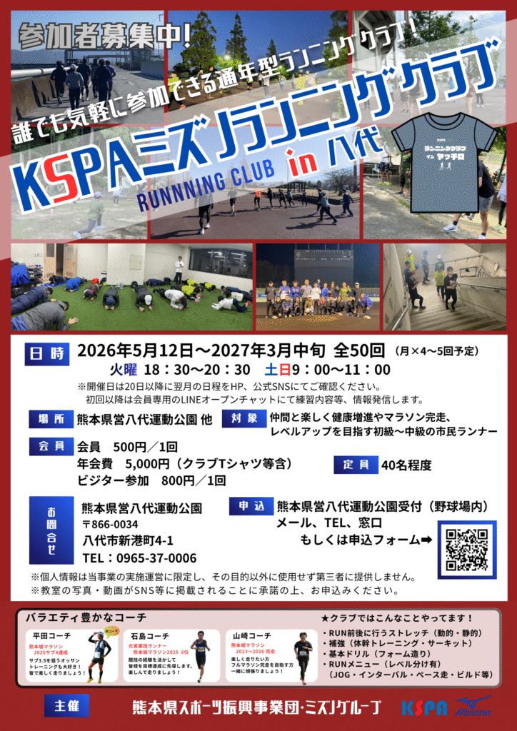 KSPA MIZUNOランニングクラブ in八代2026 第6期の募集を開始します‼️