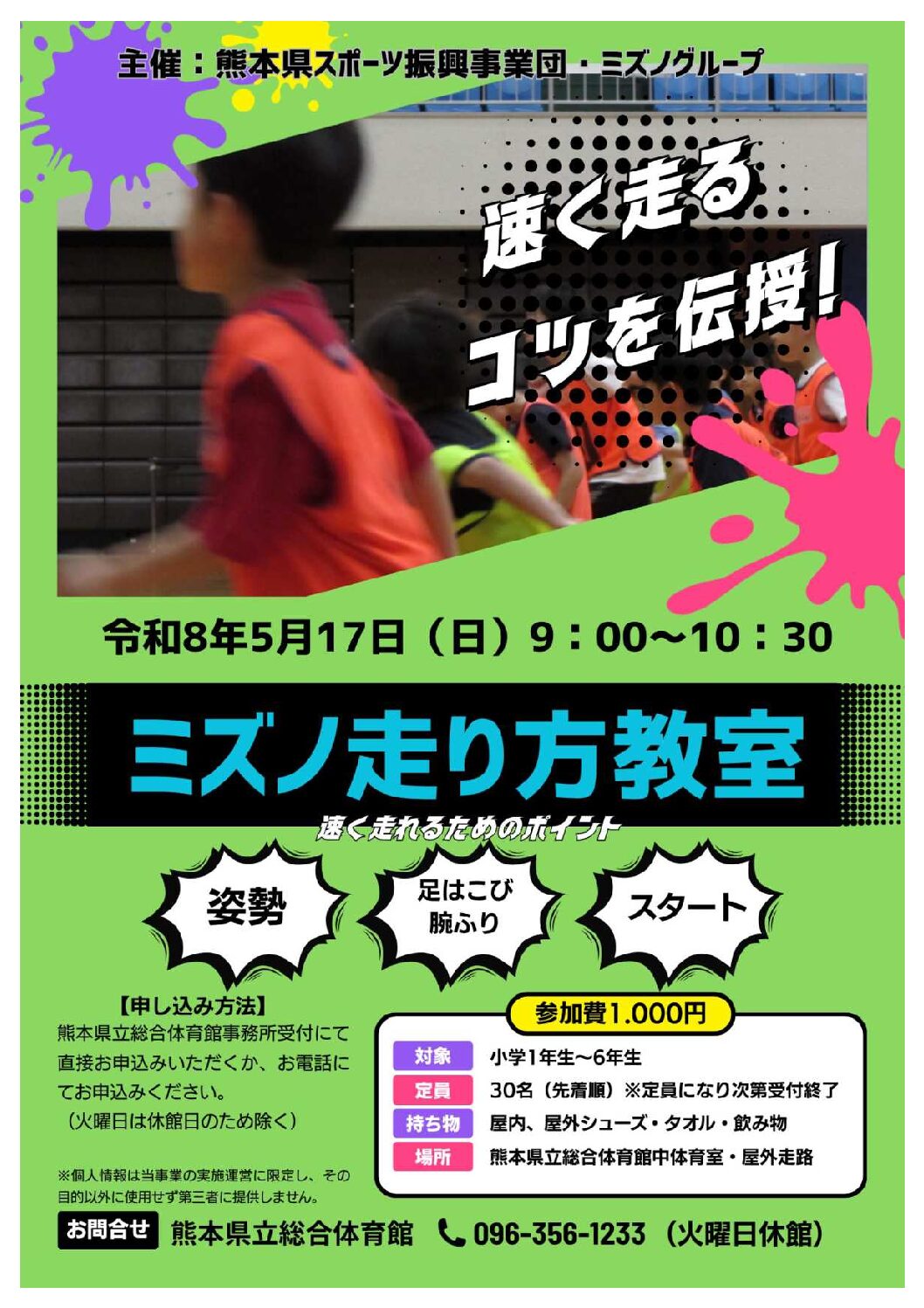 熊本県立総合体育館「ミズノ走り方教室」開催のお知らせ