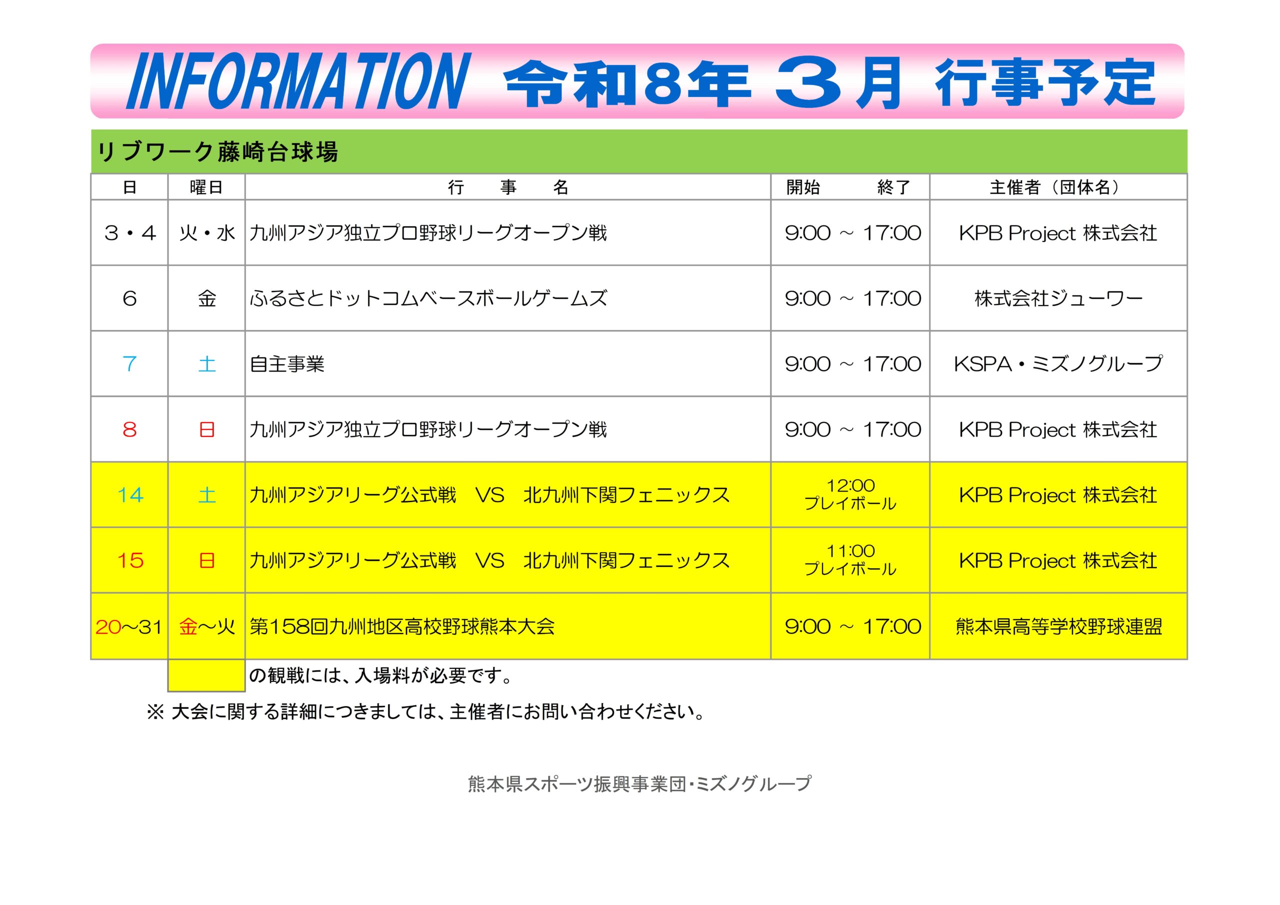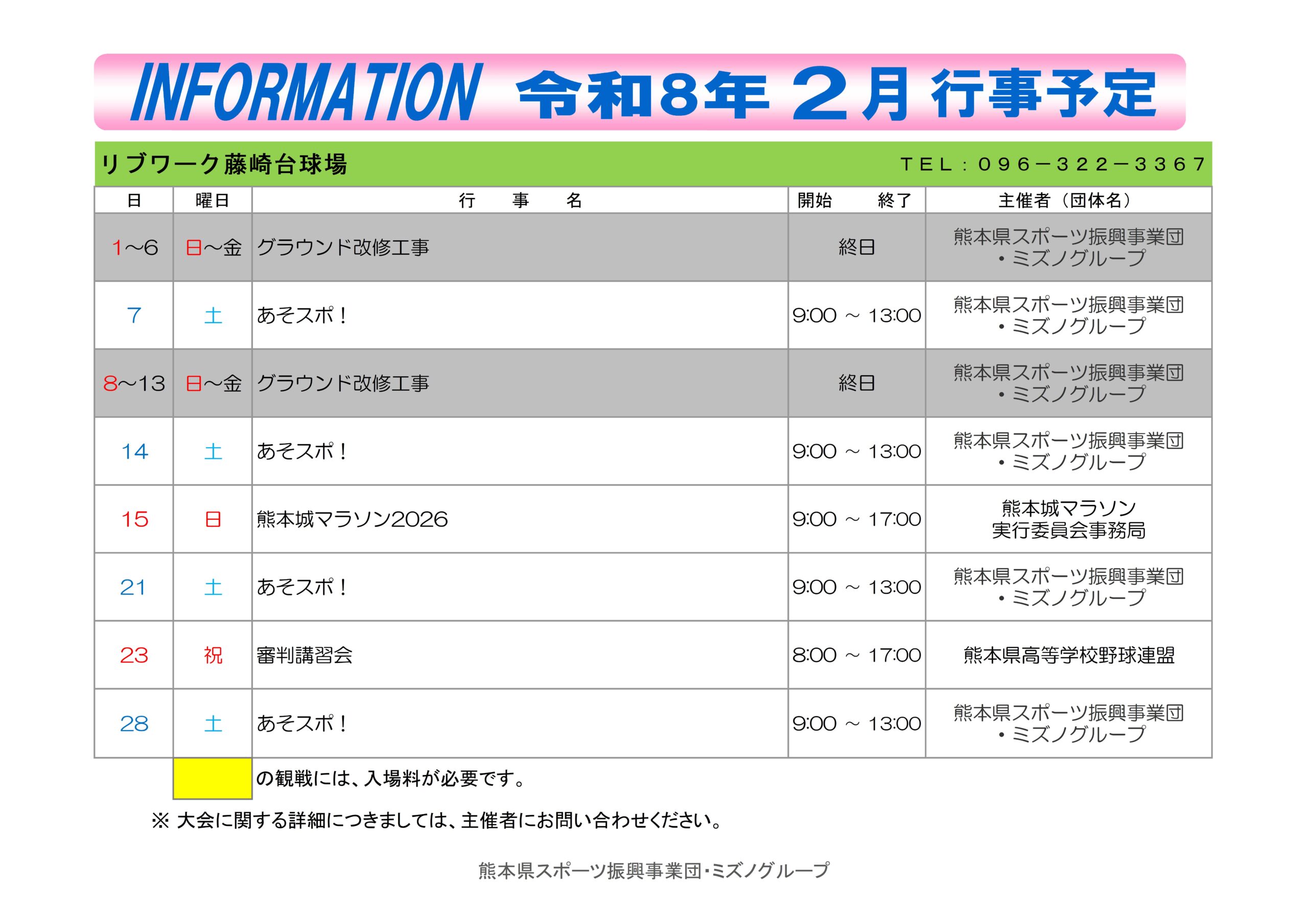 リブワーク藤崎台球場 TEL:096-322-3367