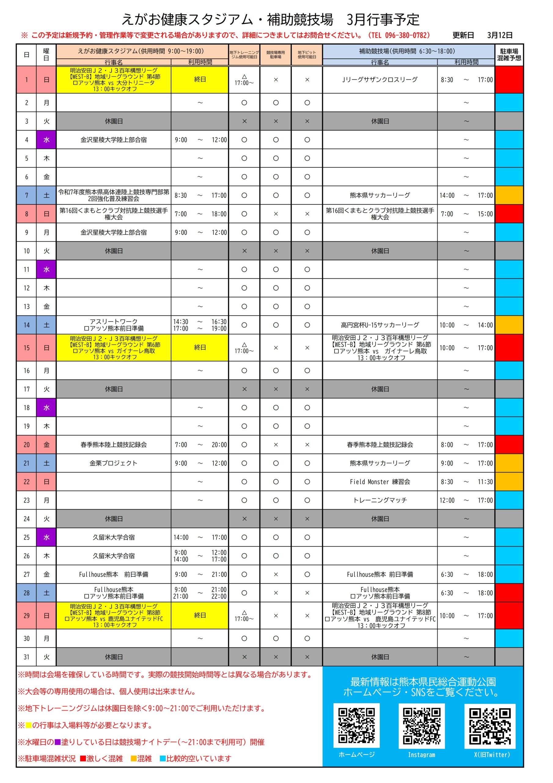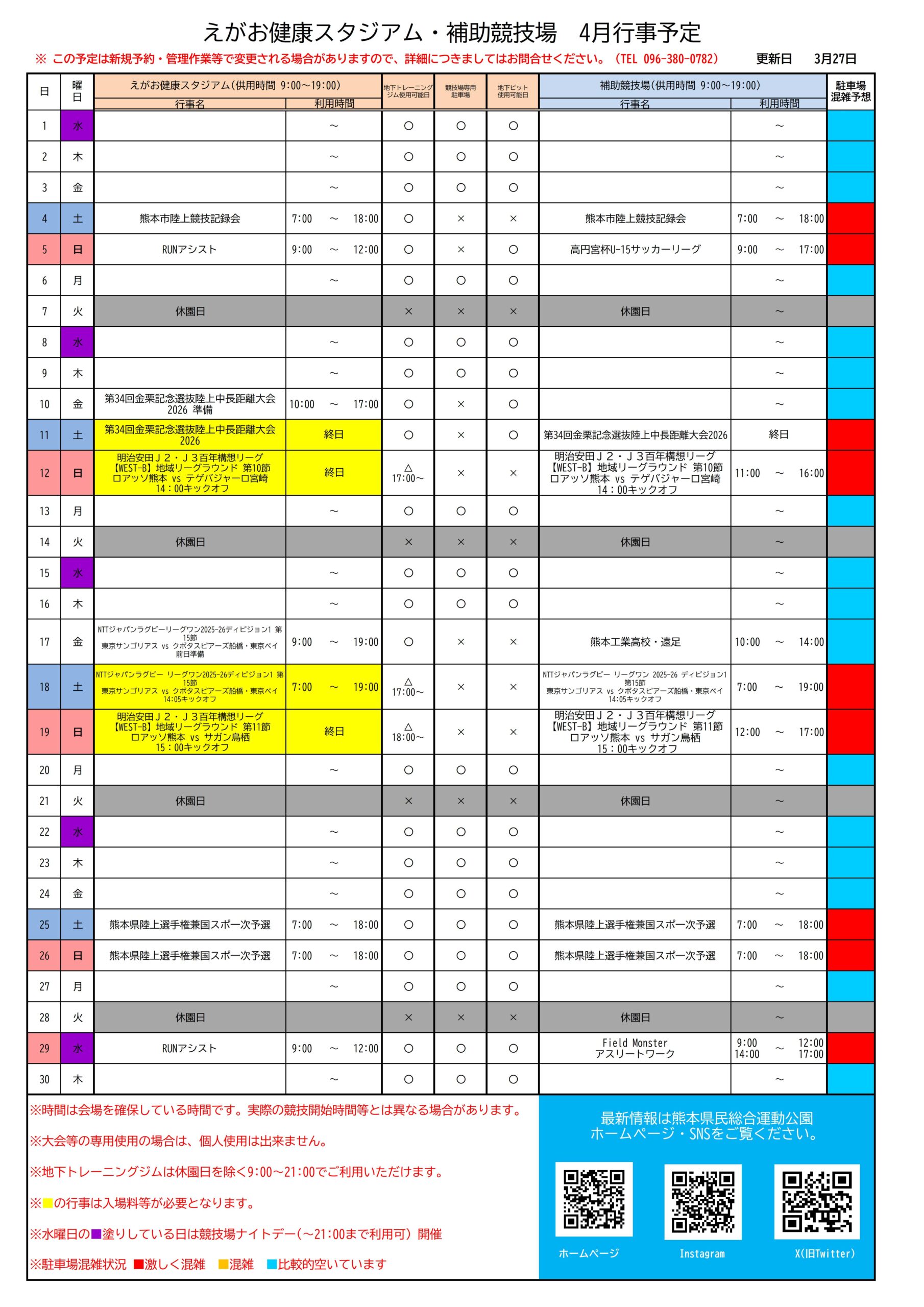 陸上競技場(えがお健康スタジアム)・補助競技場TEL:096-380-0782