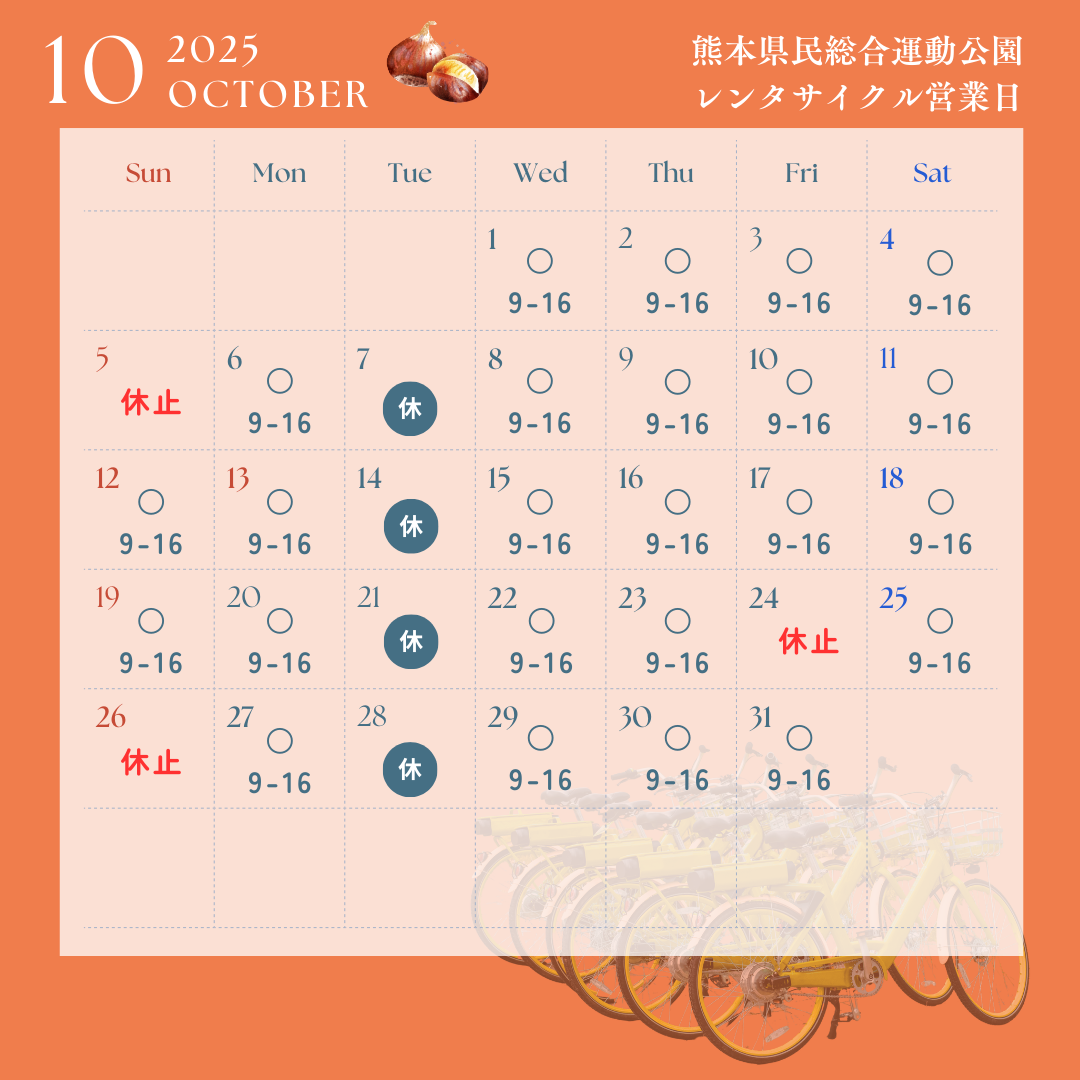 熊本県民総合運動公園 貸出自転車営業カレンダー |