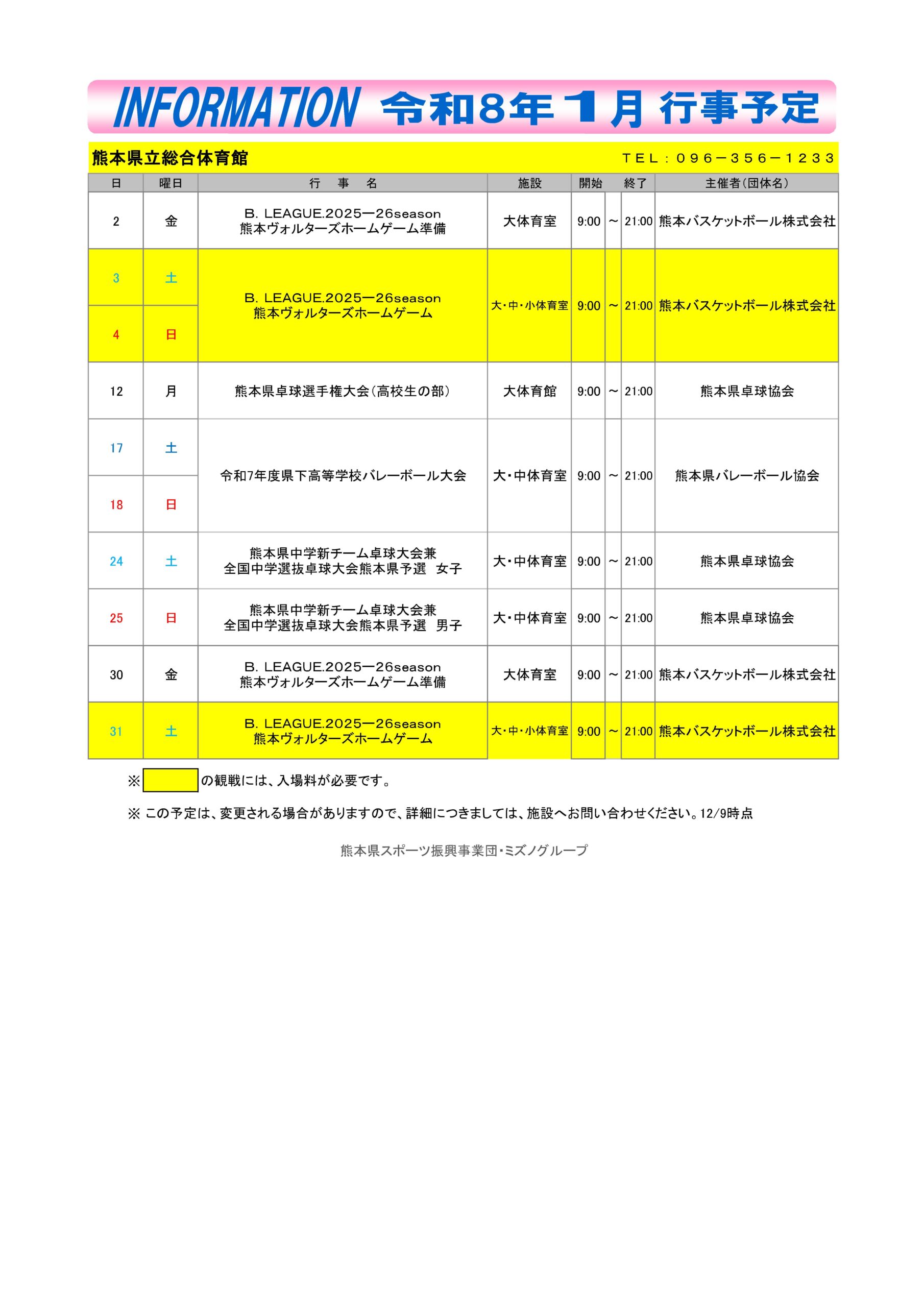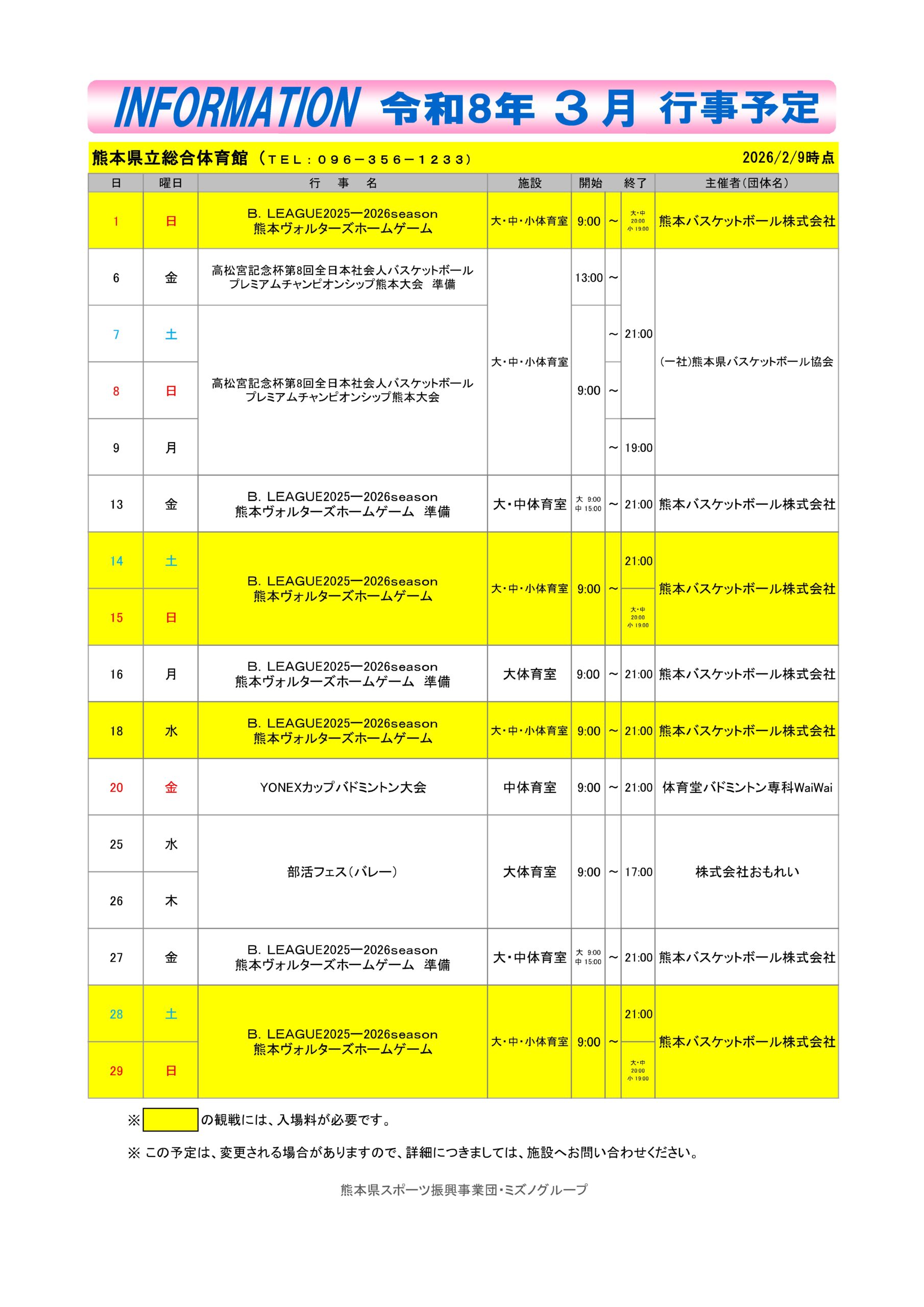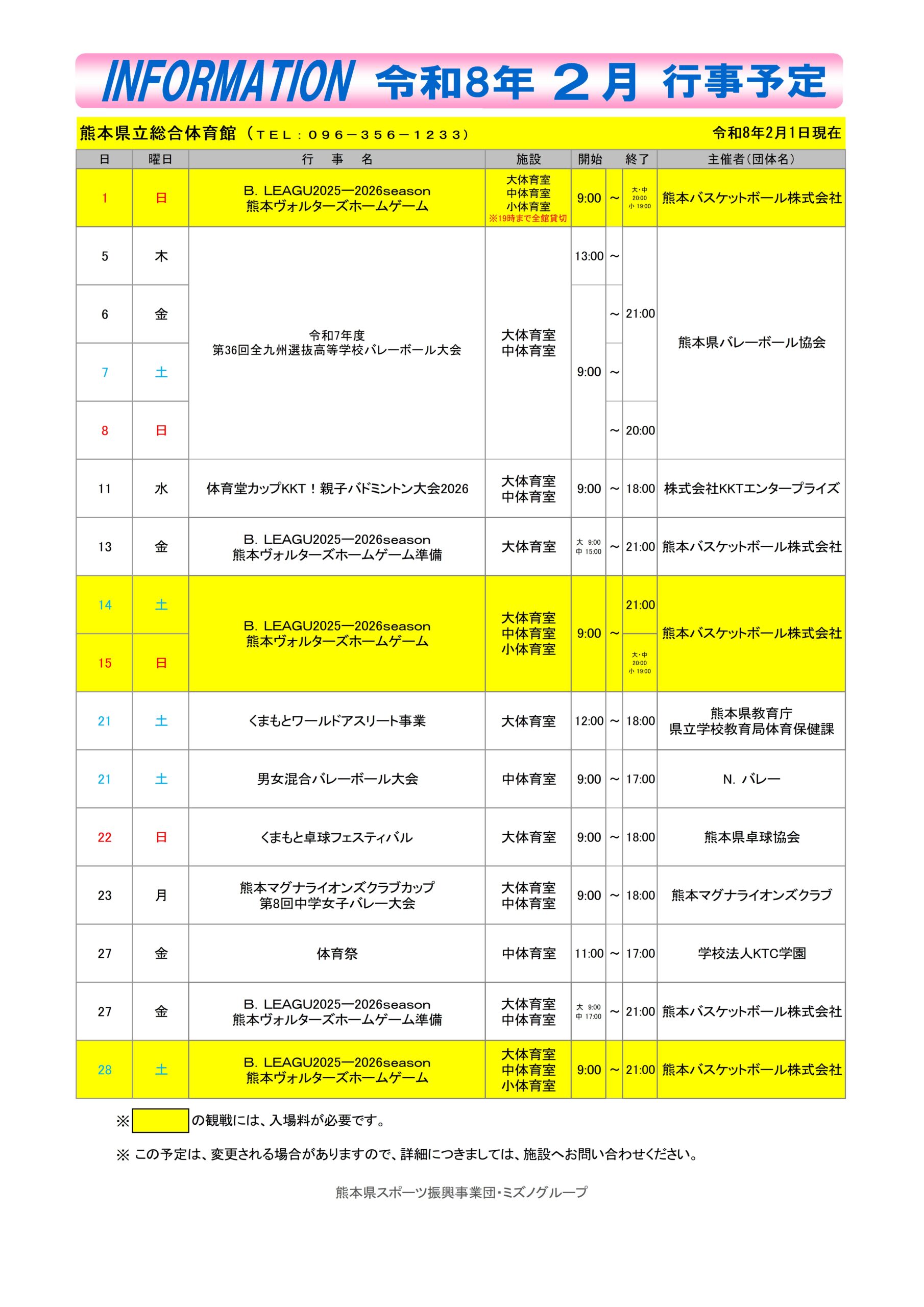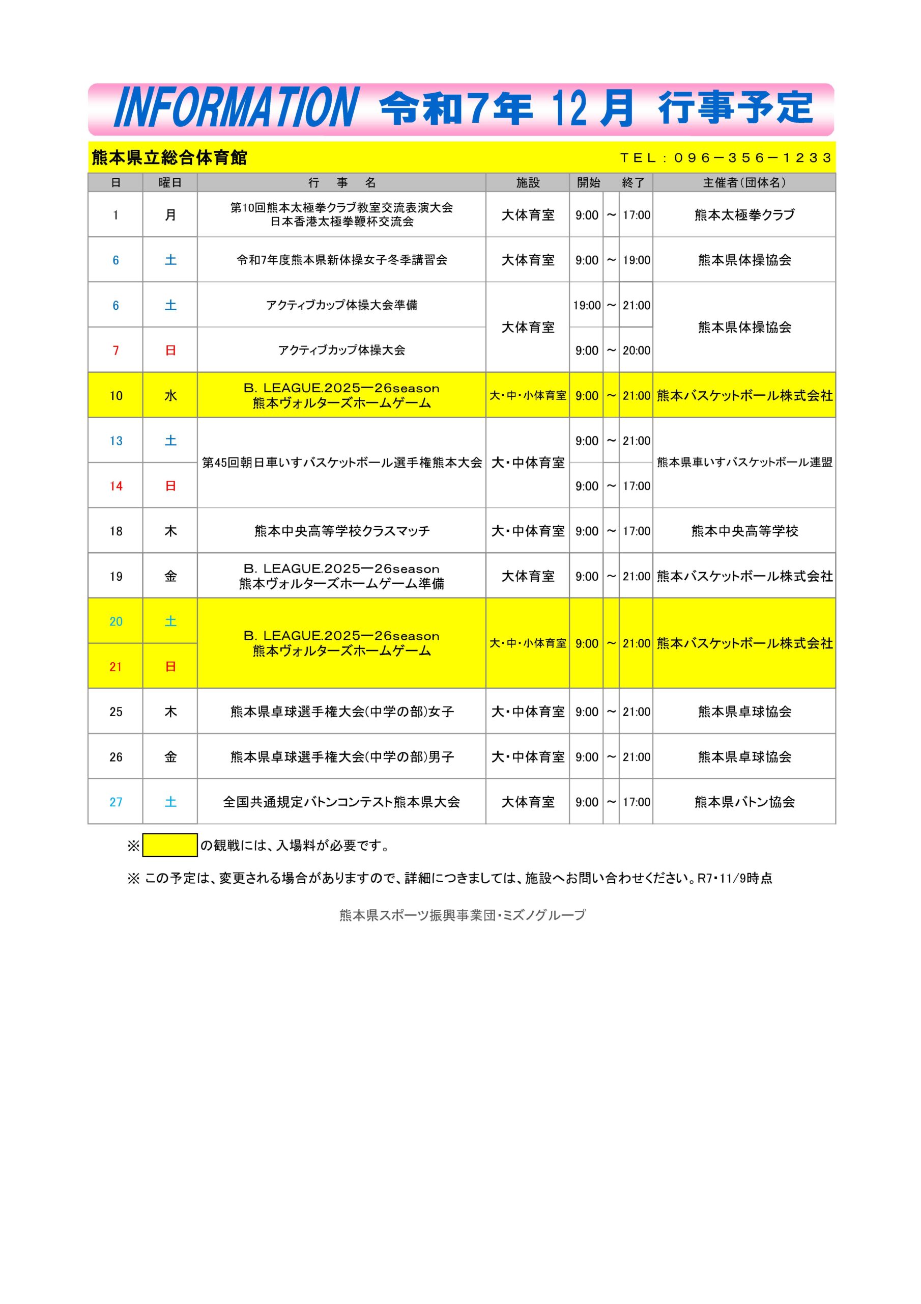 ・当体育館の施設設備でなければ運営が困難なものについては別途考慮した上で調整しております。