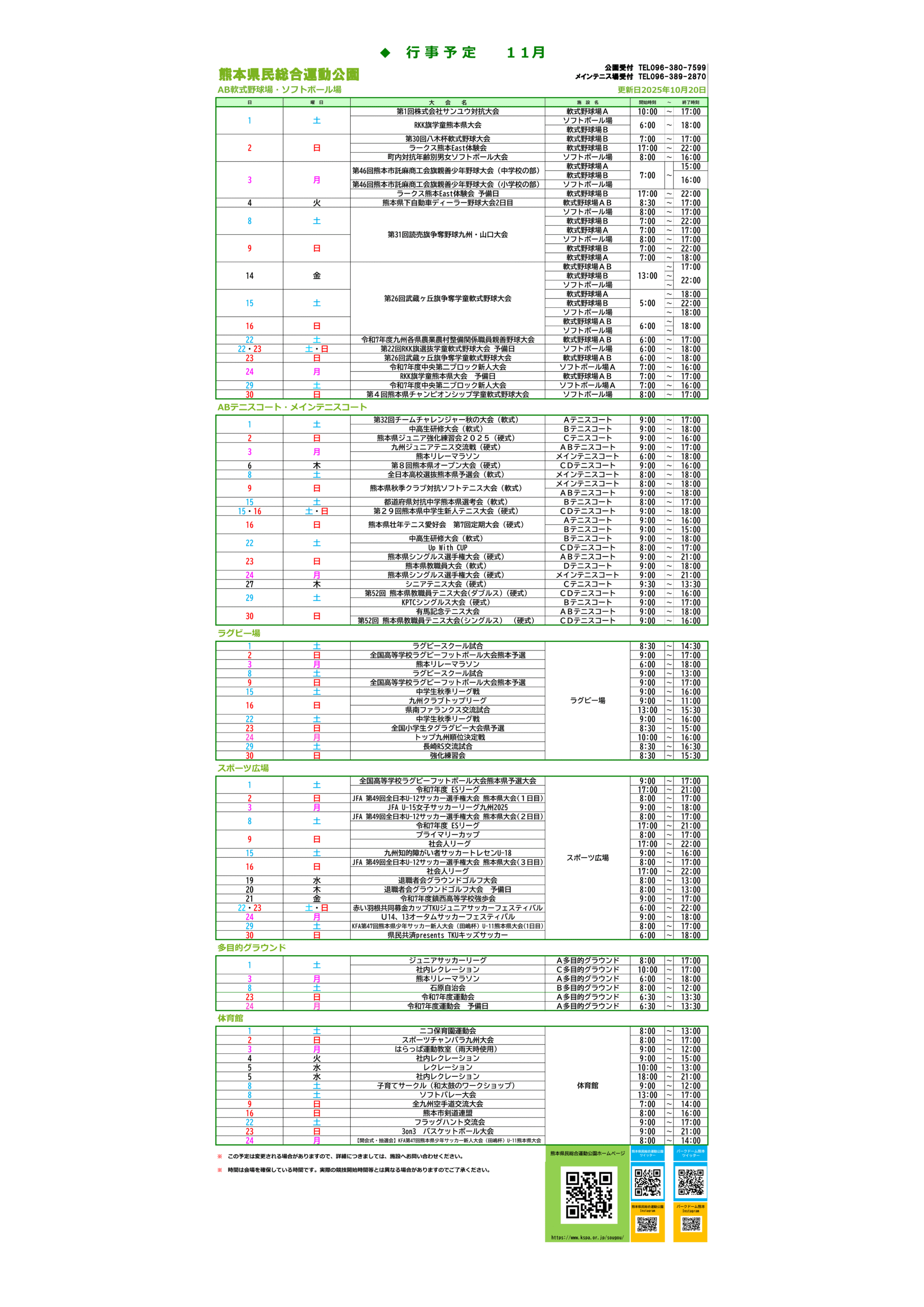 令和7年度熊本県民総合運動公園年間調整内定一覧