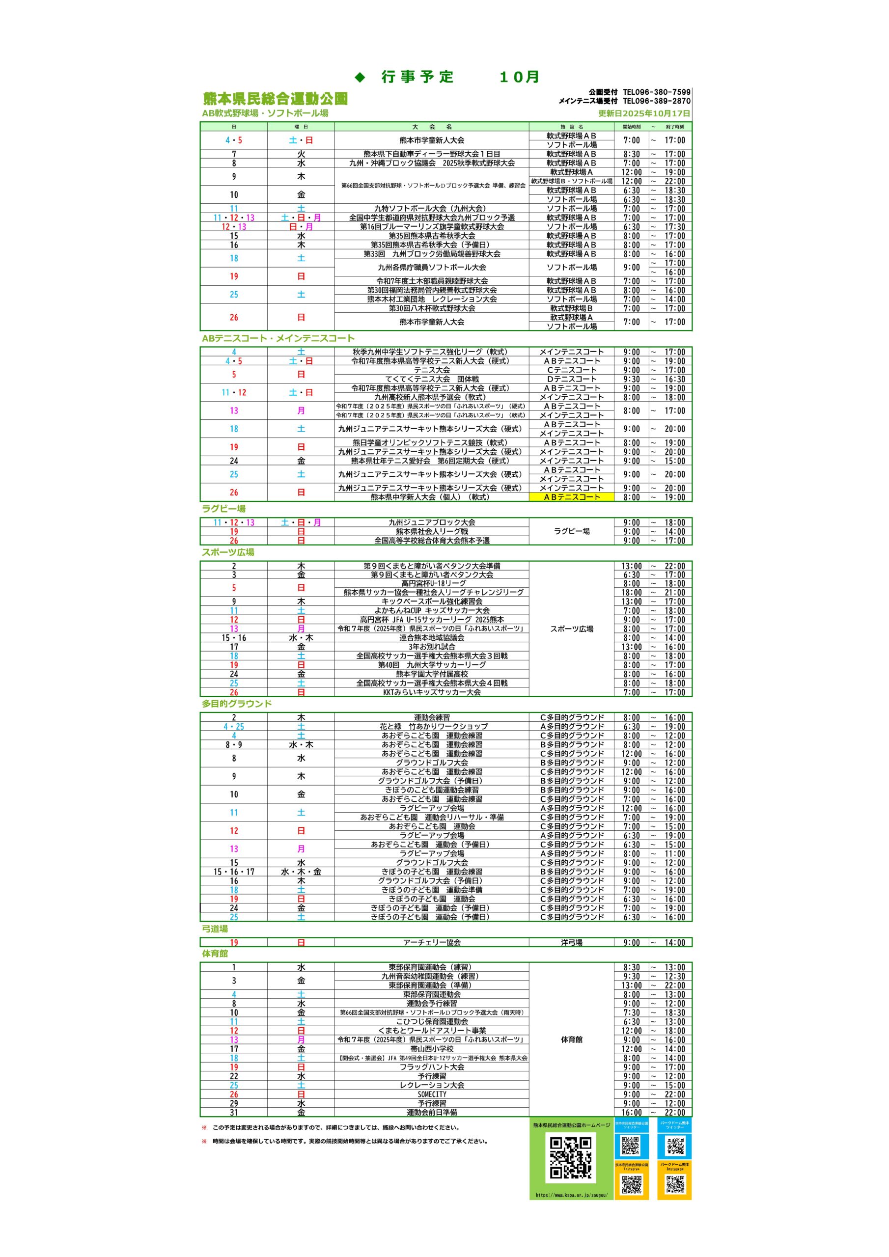 令和7年度熊本県民総合運動公園年間予約大会内定情報検索方法について