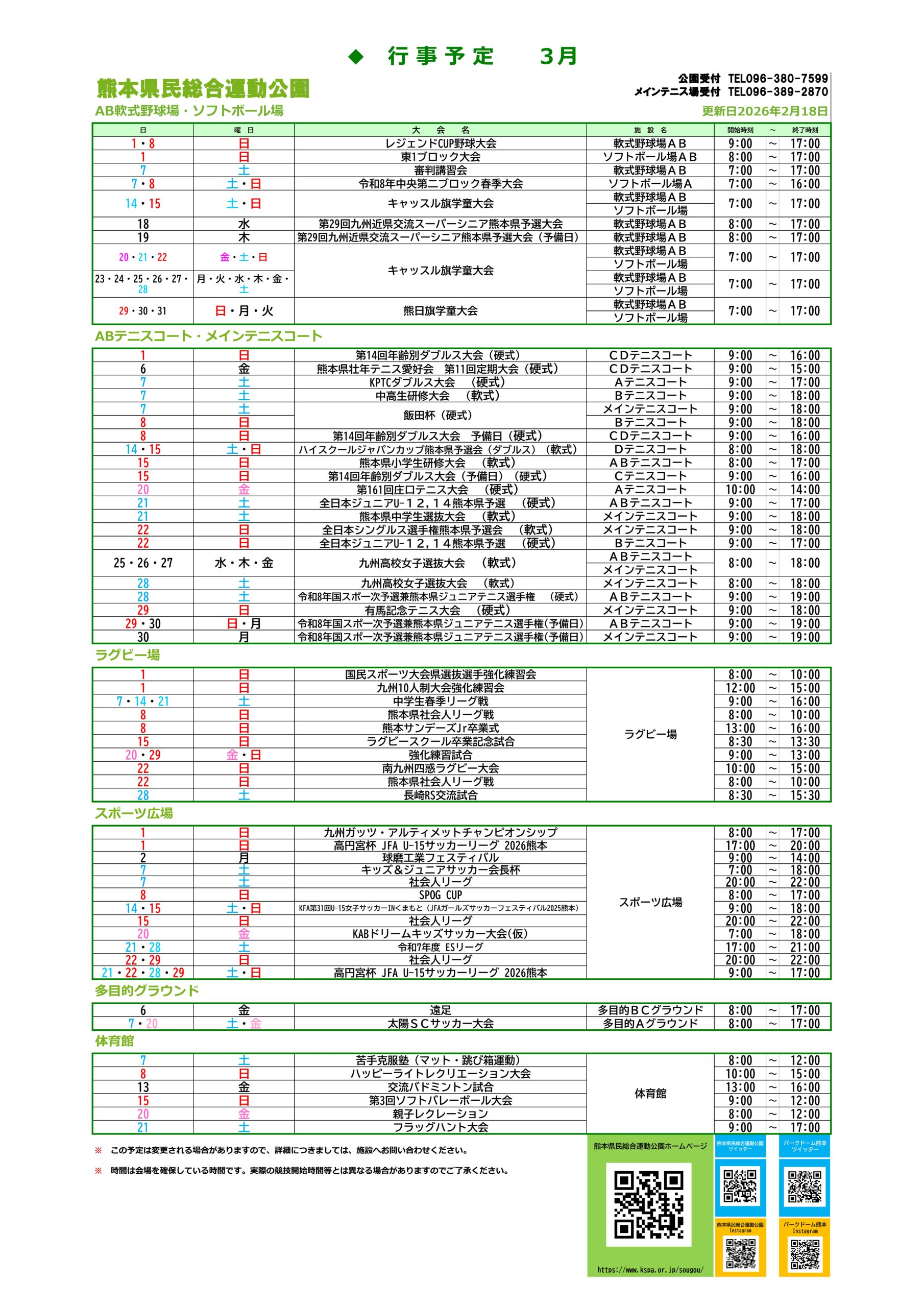 熊本県民総合運動公園 公園受付096-380-7599